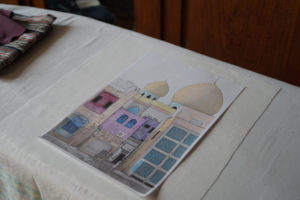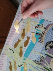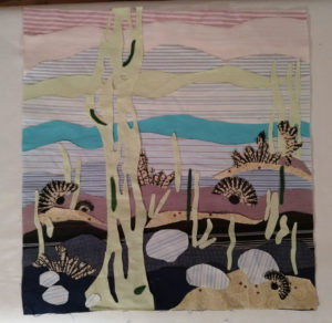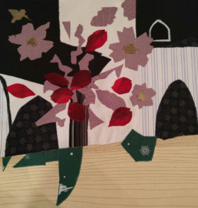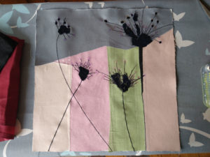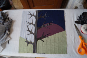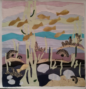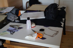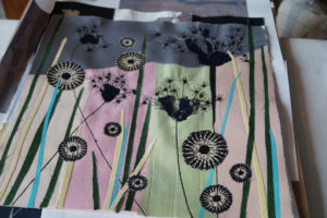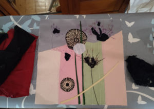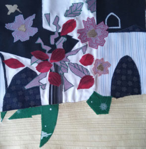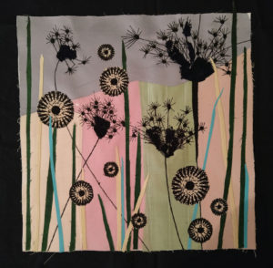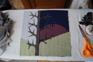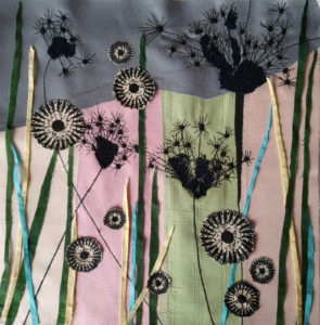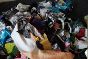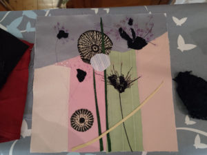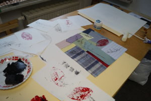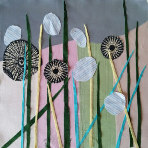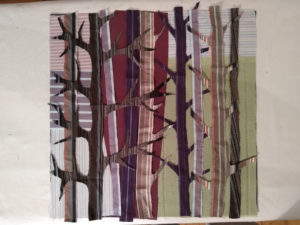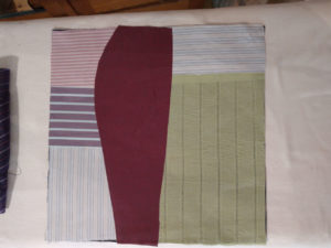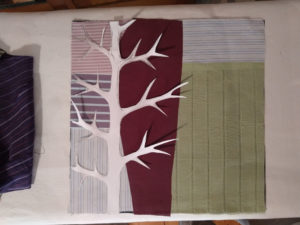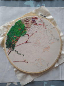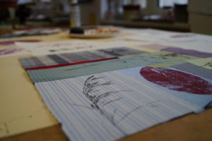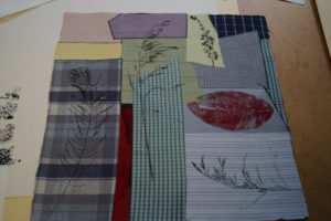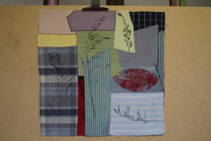 Im Ergebnis entstehen textilen Collagen, mit grafischer Stickerei (Stickstich), bedruckt oder bemalt, die auf Ästhetik, Nachhaltigkeit und Wert scheinbar „unbrauchbarer“ Ressourcen, wie z.B. „abgetragener“ Textilien, verweisen.