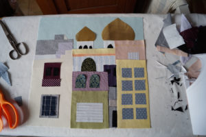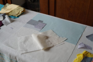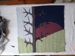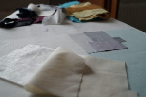 Im Laufe des Prozesses wird eine Serie von textilen Arbeiten entstehen, die sowohl als Einzelwerke, gerahmt oder auf Keilrahmen aufgezogen, aber auch als eine textile Fliesenwand, verbunden über Haken und Ösen, präsentiert werden können.
